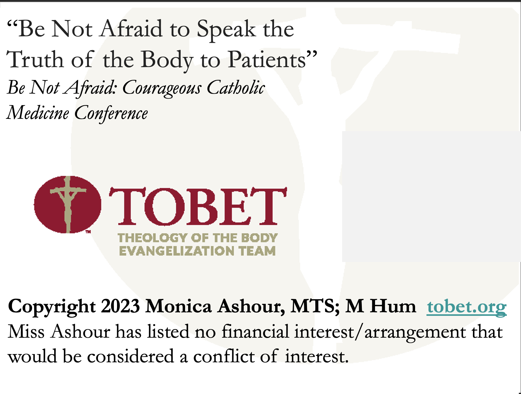 Slideshow from Monica Ashour’s Talk at The Catholic Medical Association Conference 2023 Phoenix AZ: Be Not Afraid to Speak the Truth of the Body to Patients, September 2023.