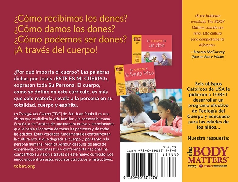 La Teología del Cuerpo es un enfoque completo y hermoso de la verdad del cuerpo y su significado. En una cultura donde el cuerpo es considerado «enemigo de la libertad», la Teología del Cuerpo de San Juan Pablo II es más necesaria que nunca. La serie de libros de lecciones The Body Matters enseña las verdades sobre el cuerpo de una manera accesible y apropiada para la edad. Es un gran recurso para los padres, los programas de formación en la fe y las escuelas católicas, para ayudar a los niños a ver la santidad del cuerpo. Aquí se pueden encontrar las enseñanzas de San Juan Pablo II sobre el cuerpo en un lenguaje accesible para los niños, con hermosas ilustraciones, ejemplos prácticos y una sólida teología católica.