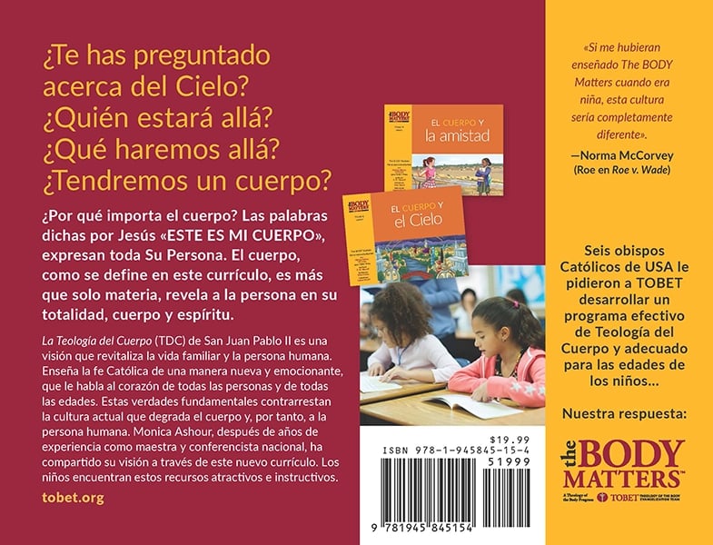 La Teología del Cuerpo es un enfoque completo y hermoso de la verdad del cuerpo y su significado. En una cultura donde el cuerpo es considerado «enemigo de la libertad», la Teología del Cuerpo de San Juan Pablo II es más necesaria que nunca. La serie de libros de lecciones The Body Matters enseña las verdades sobre el cuerpo de una manera accesible y apropiada para la edad. Es un gran recurso para los padres, los programas de formación en la fe y las escuelas católicas, para ayudar a los niños a ver la santidad del cuerpo. Aquí se pueden encontrar las enseñanzas de San Juan Pablo II sobre el cuerpo en un lenguaje accesible para los niños, con hermosas ilustraciones, ejemplos prácticos y una sólida teología católica.