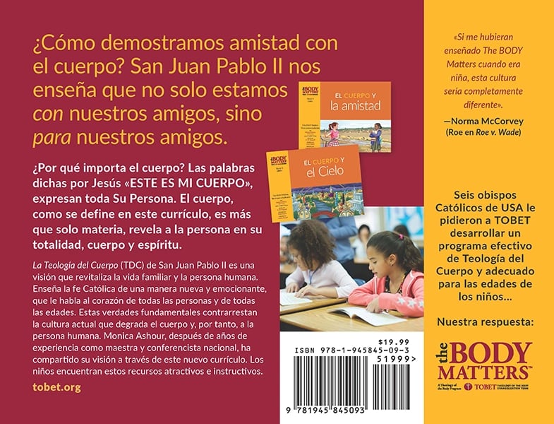 La Teología del Cuerpo es un enfoque completo y hermoso de la verdad del cuerpo y su significado. En una cultura donde el cuerpo es considerado «enemigo de la libertad», la Teología del Cuerpo de San Juan Pablo II es más necesaria que nunca. La serie de libros de lecciones The Body Matters enseña las verdades sobre el cuerpo de una manera accesible y apropiada para la edad. Es un gran recurso para los padres, los programas de formación en la fe y las escuelas católicas, para ayudar a los niños a ver la santidad del cuerpo. Aquí se pueden encontrar las enseñanzas de San Juan Pablo II sobre el cuerpo en un lenguaje accesible para los niños, con hermosas ilustraciones, ejemplos prácticos y una sólida teología católica.