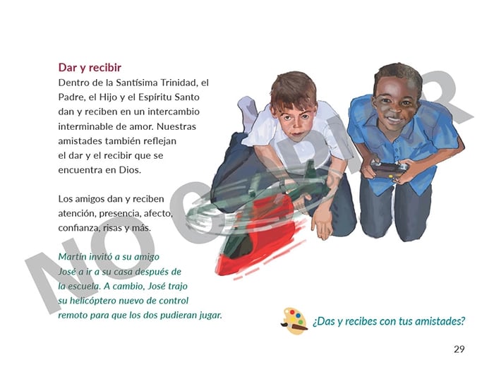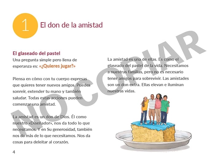 This book teaches how friendships are the icing on the cake of life. There are different levels of friendship. Children learn to approach friendships as gifts to enjoy. They learn to be “for” another person, interested in the good of the other person. Good human friendships mirror the friendship we have with Jesus.