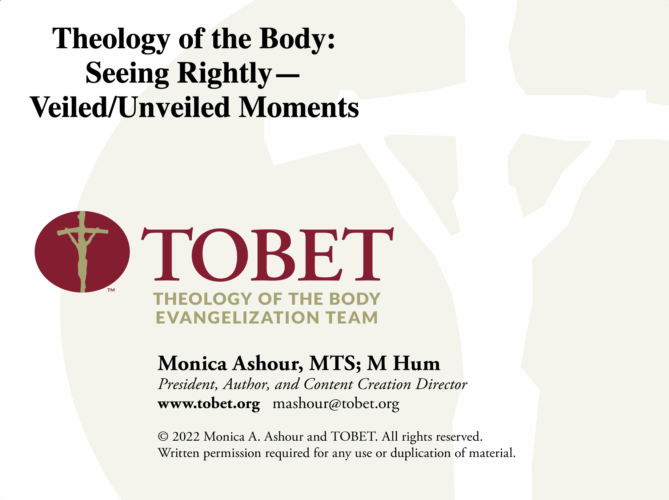 - Theology of the Body: Seeing Rightly – Veiled/Unveiled Moments