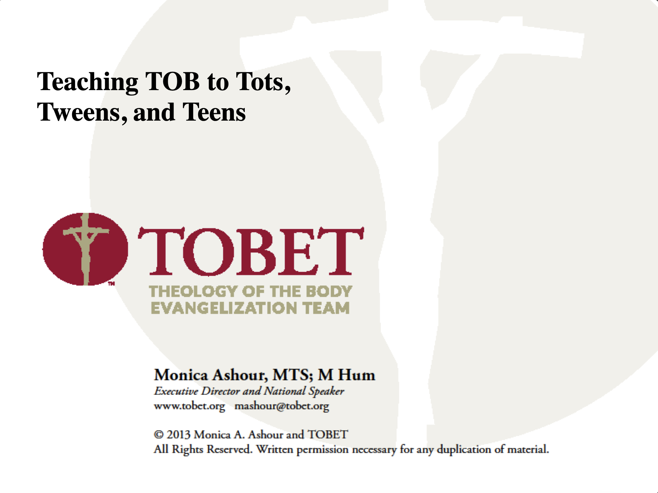 - Teaching TOB to Tots Tweens Teens