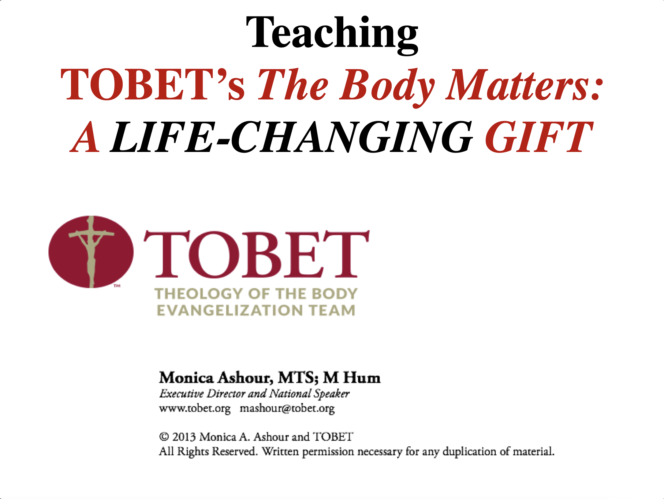 3 Slideshows from Monica Ashour and Susanna Van Vickle’s Talk at the Diocese of Gary Indiana Catechetical Conference: