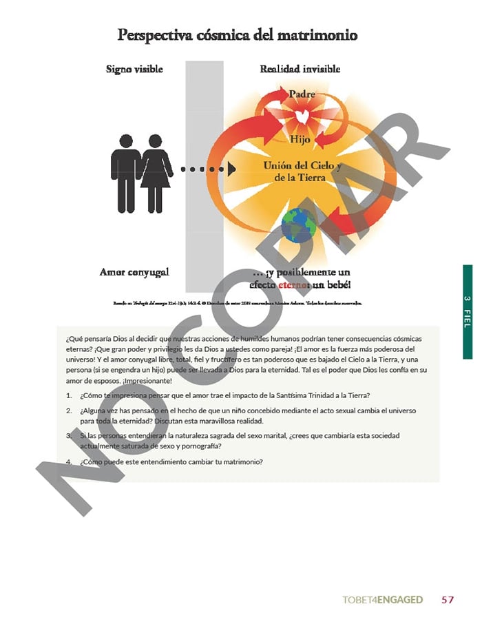 El Libro de preparación matrimonial mediante la Teología del Cuerpo de TOBET es el texto central para las parejas comprometidas que se preparan para el matrimonio.
