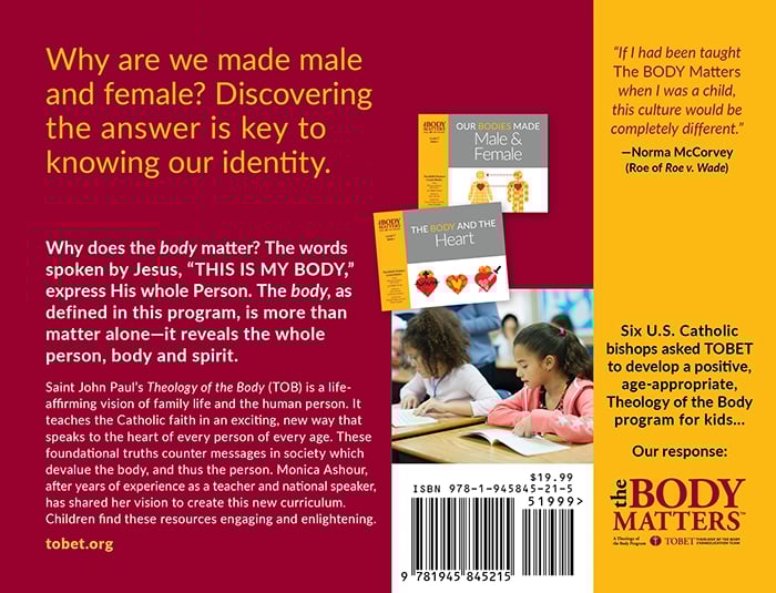 The Theology of the Body is a positive, beautiful approach to the truth of the body and its meaning. In a culture where the body is considered “an enemy to freedom,” Saint John Paul’s Theology of the Body is necessary more than ever. The Body Matters lesson books series teaches the truths about the body in an accessible, age-appropriate way. It is a great resource for parents, Faith Formation programs and Catholic schools to help children see the sacredness of the body. Here you can find Saint John Paul’s teachings on the body rendered in language accessible to children, with beautiful illustrations, practical examples and solid Catholic theology.