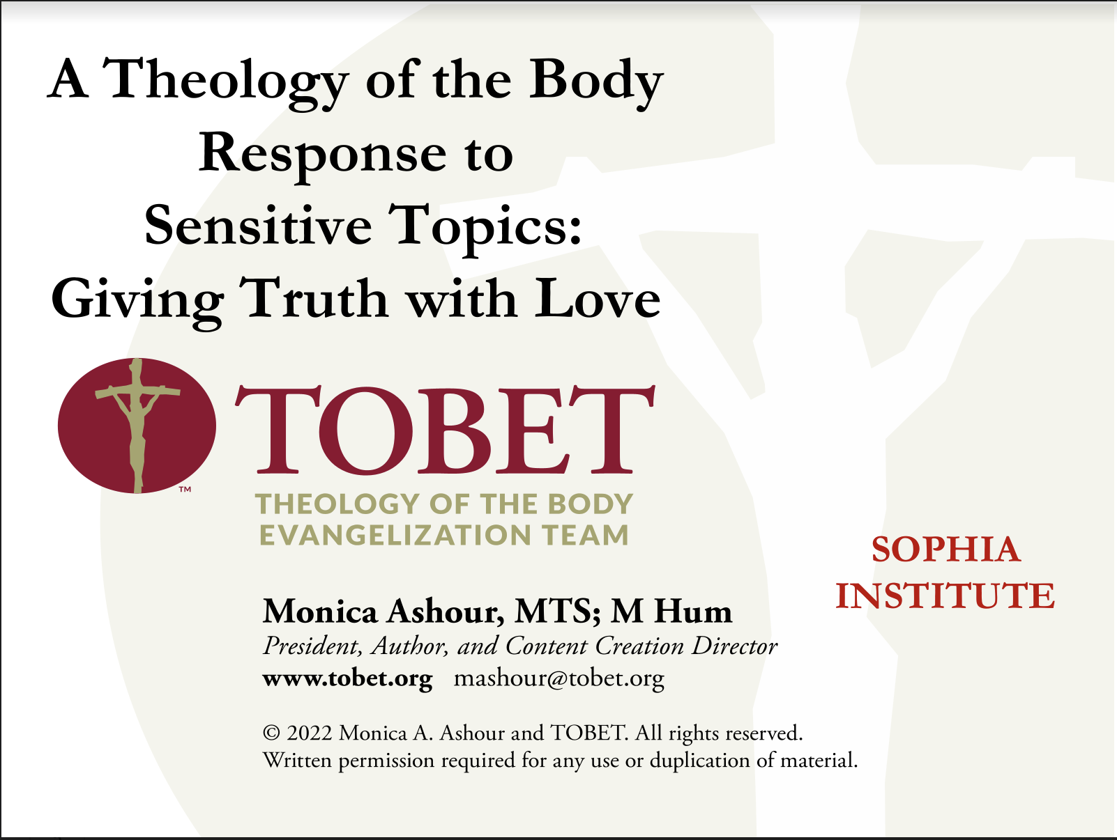 2 Slideshows from Monica Ashour’s Talk at Sophia Institute in Manchester New Hampshire: