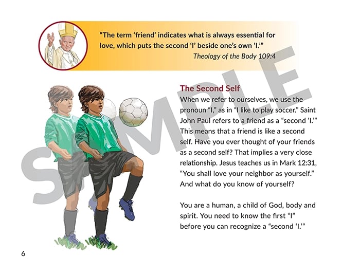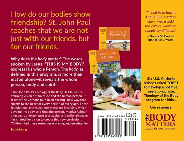 The Theology of the Body is a positive, beautiful approach to the truth of the body and its meaning. In a culture where the body is considered “an enemy to freedom,” Saint John Paul’s Theology of the Body is necessary more than ever. The Body Matters lesson books series teaches the truths about the body in an accessible, age-appropriate way. It is a great resource for parents, Faith Formation programs and Catholic schools to help children see the sacredness of the body. Here you can find Saint John Paul’s teachings on the body rendered in language accessible to children, with beautiful illustrations, practical examples and solid Catholic theology.