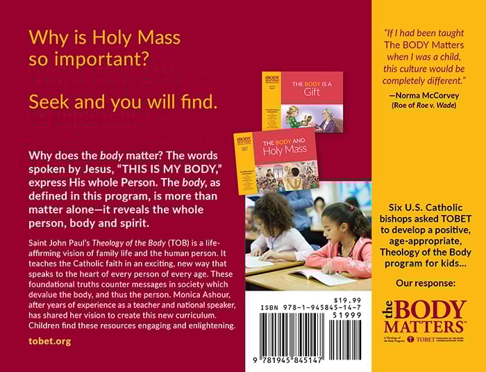 The Theology of the Body is a positive, beautiful approach to the truth of the body and its meaning. In a culture where the body is considered “an enemy to freedom,” Saint John Paul’s Theology of the Body is necessary more than ever. The Body Matters lesson books series teaches the truths about the body in an accessible, age-appropriate way. It is a great resource for parents, Faith Formation programs and Catholic schools to help children see the sacredness of the body. Here you can find Saint John Paul’s teachings on the body rendered in language accessible to children, with beautiful illustrations, practical examples and solid Catholic theology.